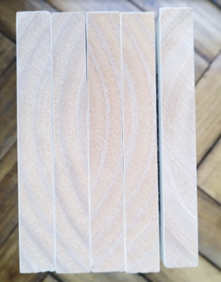 Las cinco muestras analizadas se presentan como trozos de madera, pintados de color blanco en sus caras (imagen N°1) y cantos (imagen N°2), con dimensiones de 14 cm de ancho, 30 cm de largo y 1,8 cm de espesor.